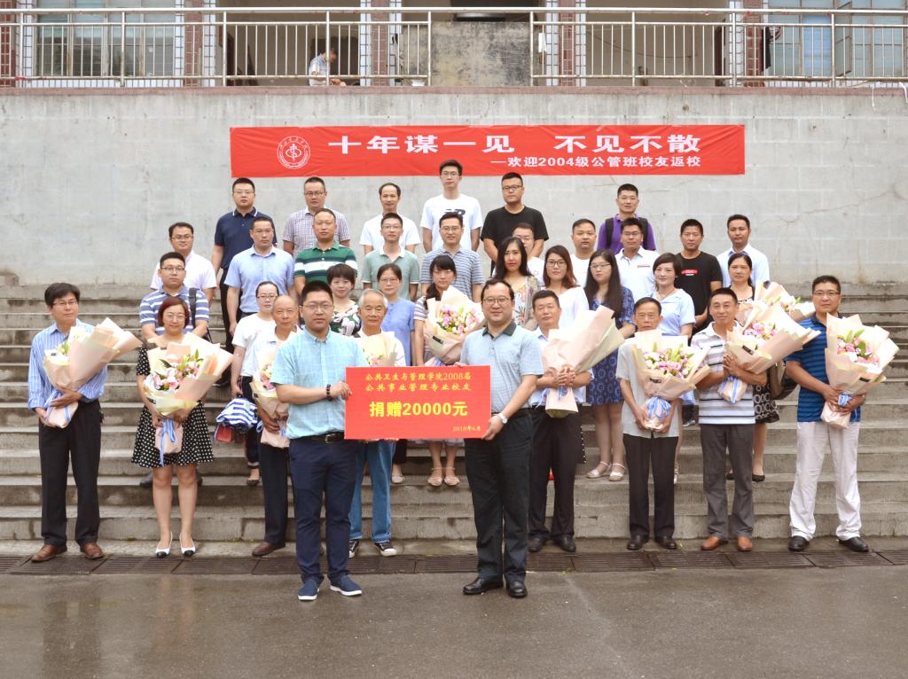 6?7日早8点,全体返校校友及受邀领导教师一起在勤政楼台阶前合影留念;合影完毕举行了简短的捐赠仪式?004级公管专业校友向母校捐赠现金20000元;捐赠仪式结束?0余位校友一起参观了校史馆、校园环境?/p>